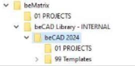 C:\Users\[Username]\ beMatrix\beCAD Library – INTERNAL\beCAD 2024